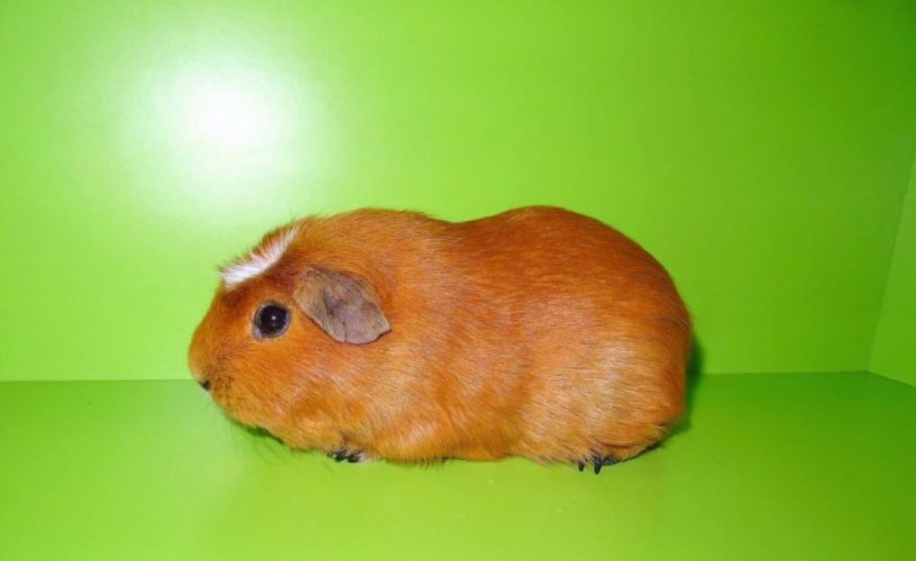 - Английский крестед (English Crested): Характеризуется розеткой, которая совпадает по цвету с основным окрасом шерсти всего зверька. То есть свинка выглядит однотонной, с аккуратным хохолком на голове. Розетка у этого типа должна быть правильной, круглой формы. Существует также подвид Английский цветной крестед, у которого окрас шерсти многоцветный, но розетка при этом повторяет один из цветов корпуса.